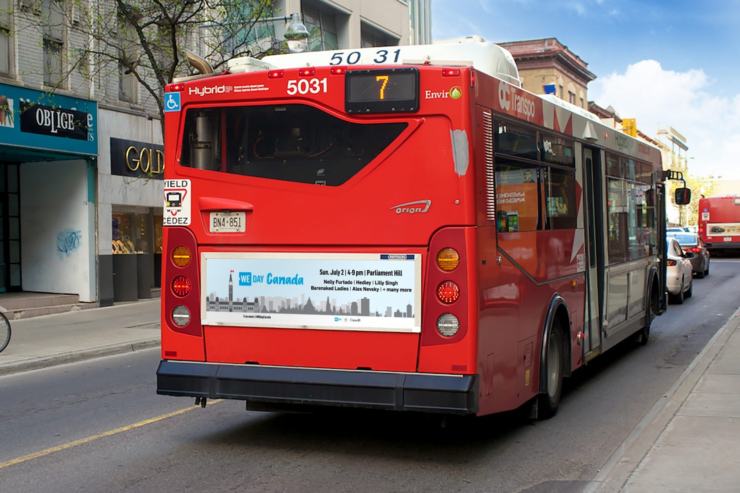 Pictured: WE Day Canada campaign currently running on OC Transpo buses in Ottawa to promote WE Day’s takeover of Parliament Hill for Canada 150.