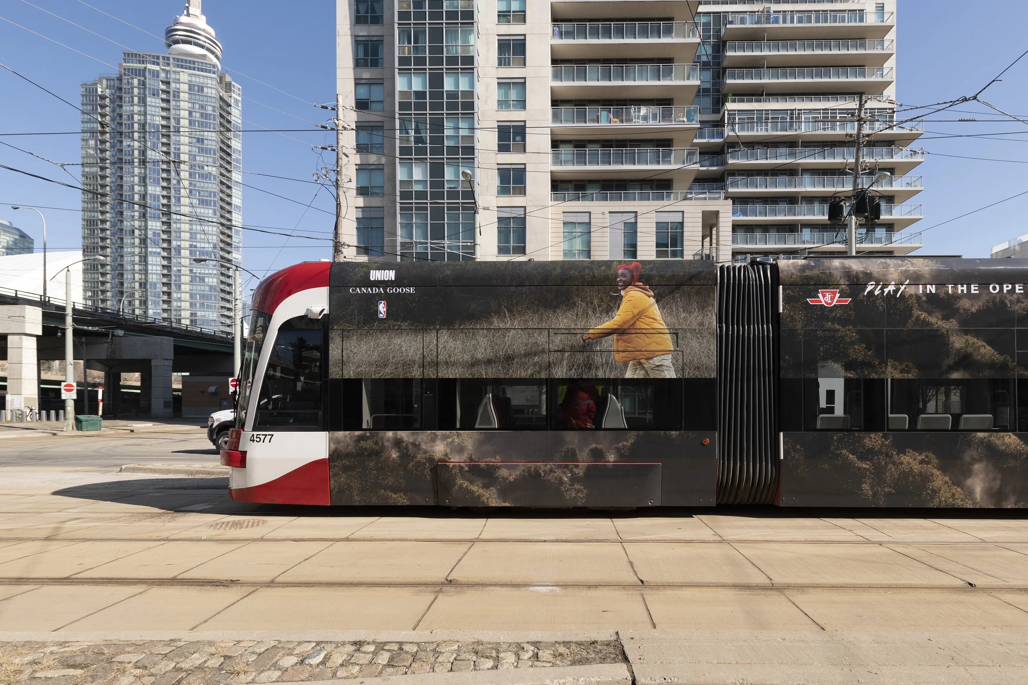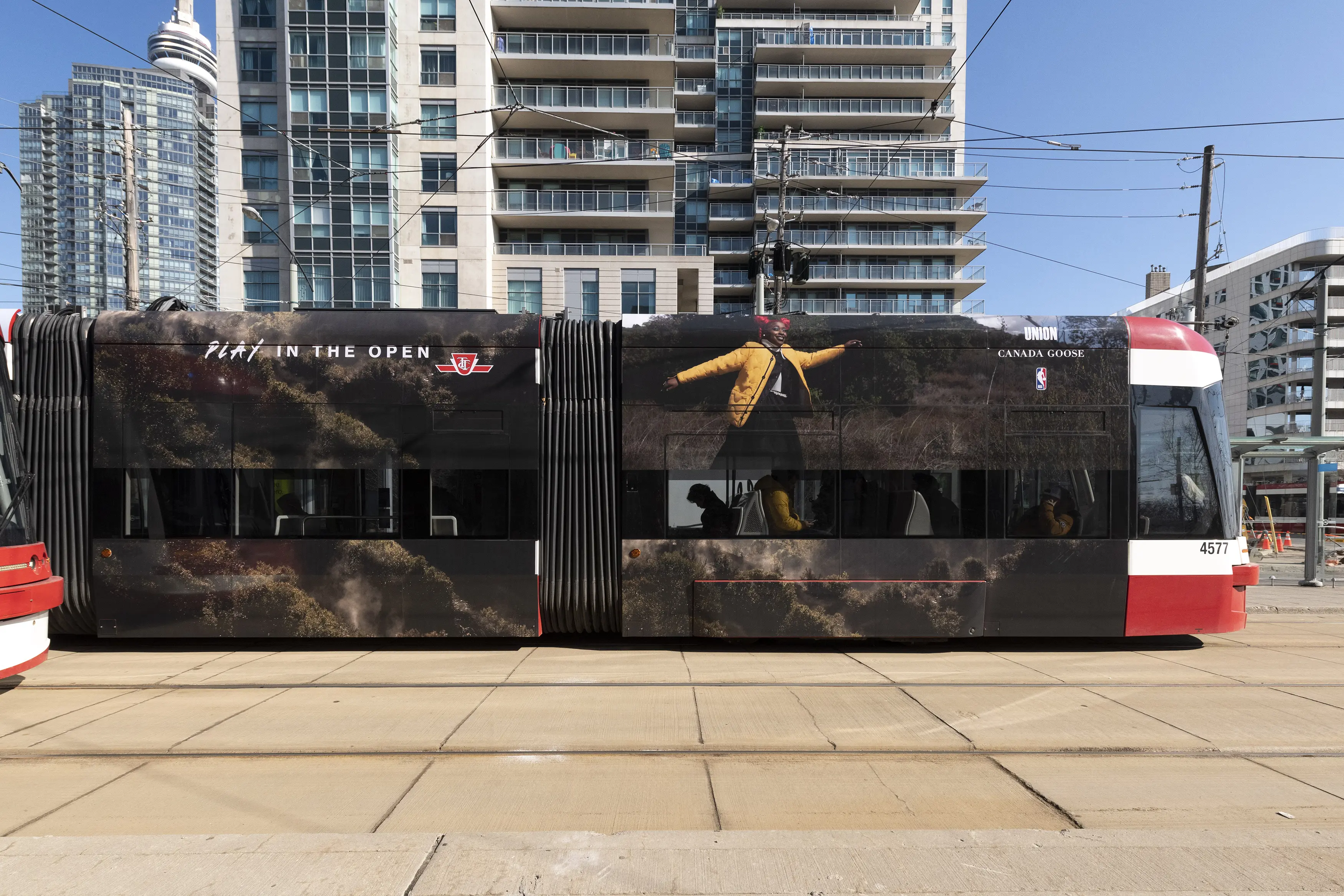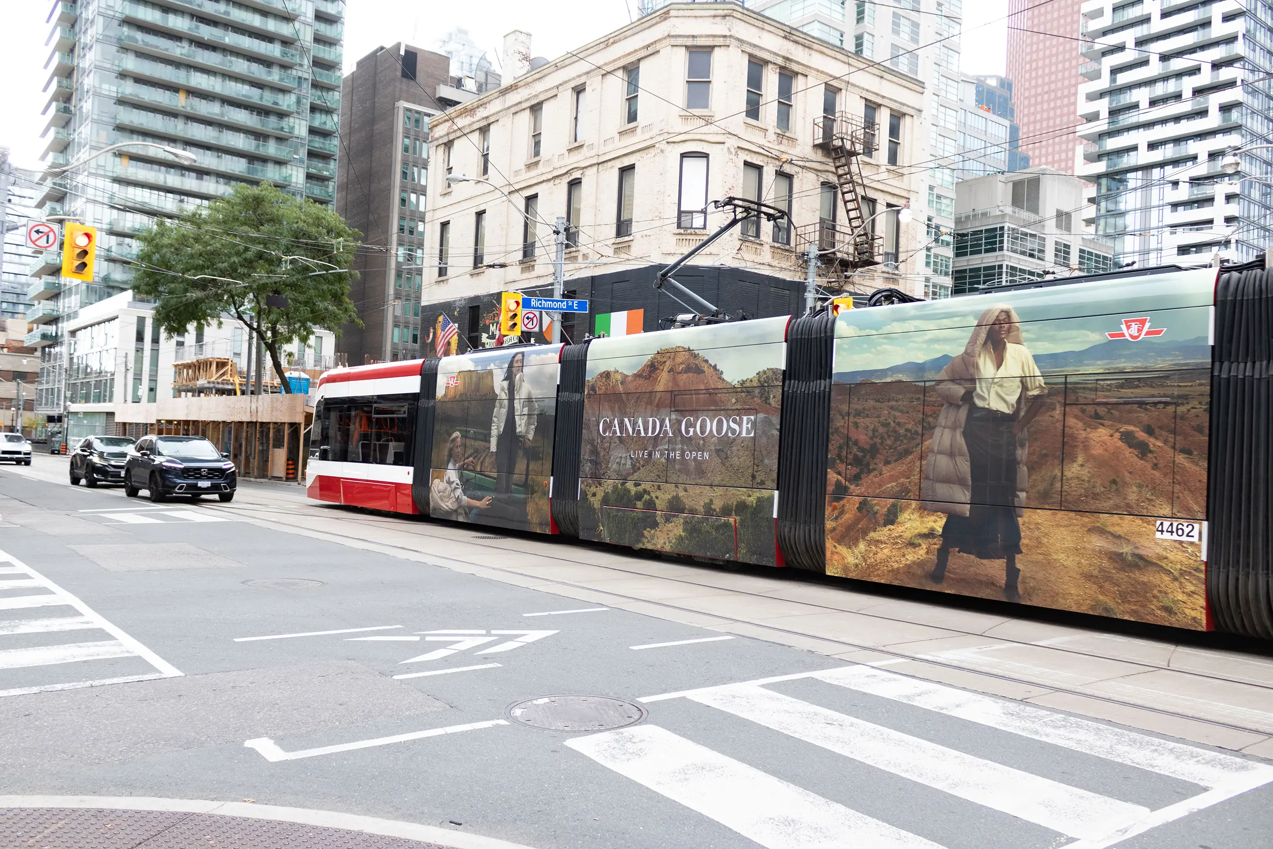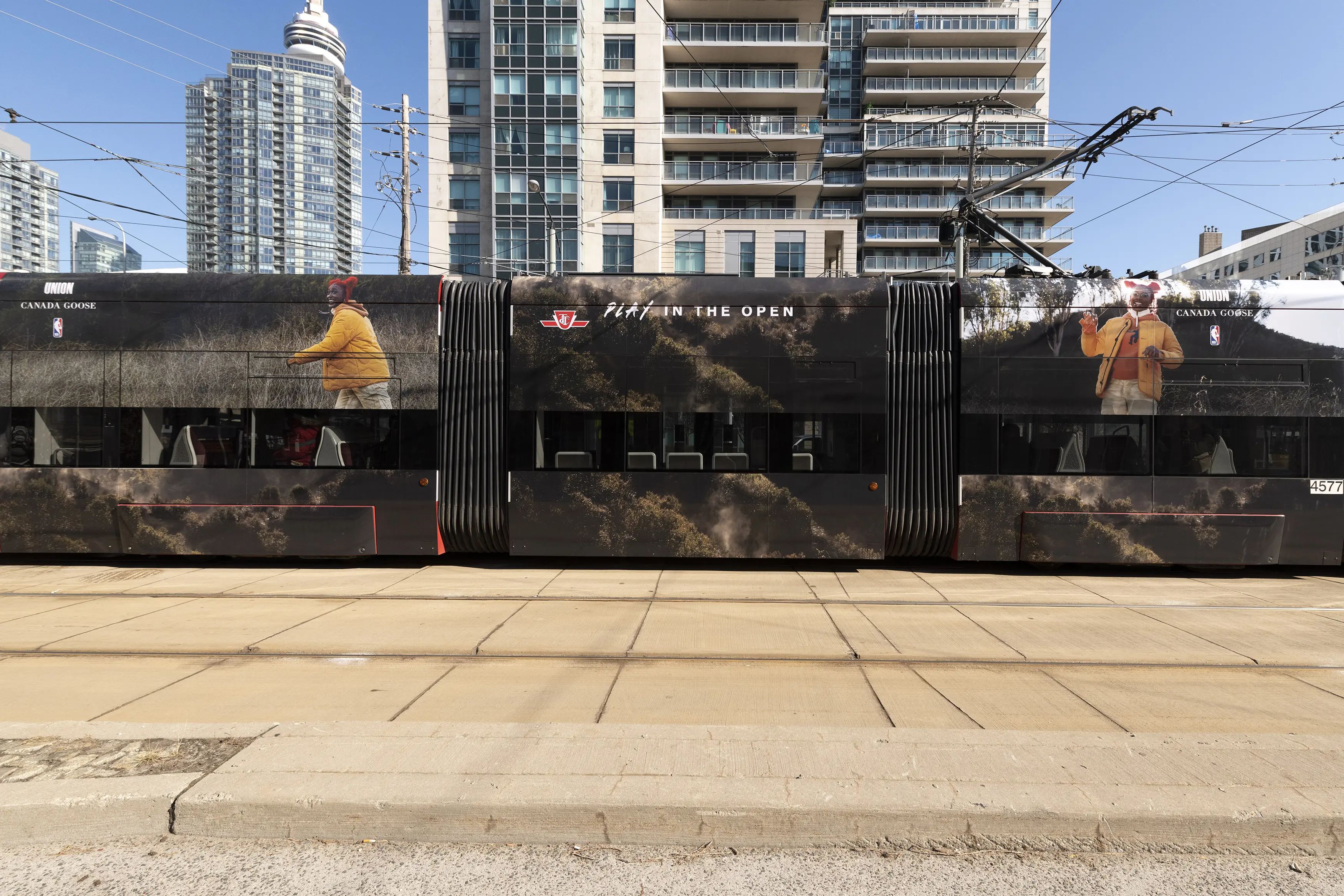 One of Transit advertising’s statement pieces, the Streetcar wrap. Cutting a swath through downtown Toronto with this gorgeous vinyl – Canada Goose partnered with the NBA to develop a stunning campaign that featured breathtaking nature photography.