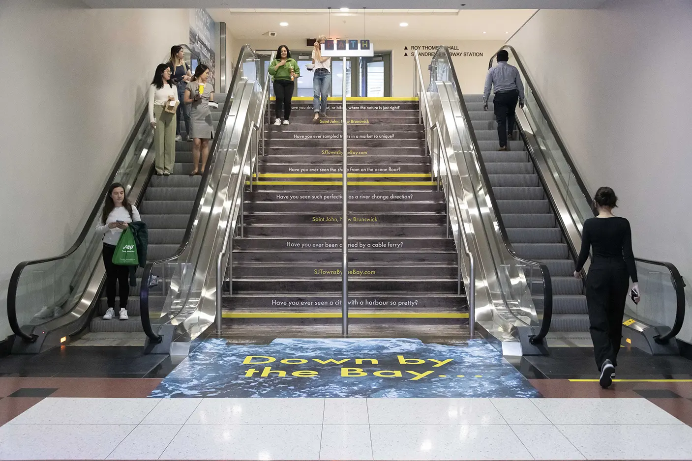 Refusing to go small, Torontonians had the chance to Discover Saint John with a mesmerizing takeover of the Metro Centre Piano Stairs. A custom song was triggered by pedestrians going up and down the stairs, accompanied by beautiful murals and digital displays that created an immersive environment that was a feast for the eyes and ears with the natural beauty of this Acadian destination.