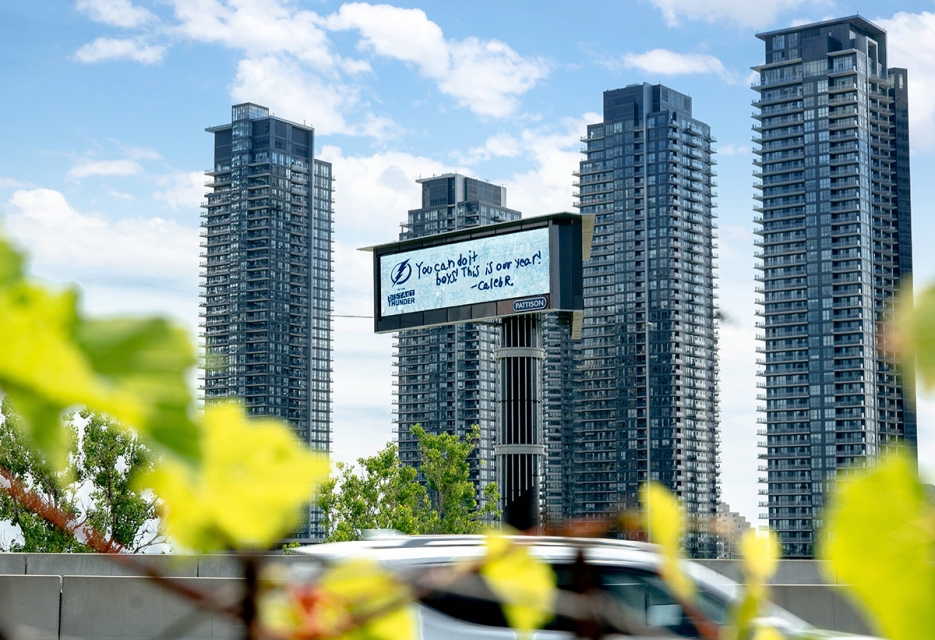 The Lightning endured a demanding NHL post-season, playing games in Toronto and Edmonton on their way to the Stanley Cup. Being away from their die-hard fan base was difficult, but with PATTISON Outdoor, fans were able send their love and support all the way from Florida. The power of Out-of-Home advertising allowed the strength and unity of the Tampa Bay Lightning fans to extend beyond their own city and reach the players who were away, in a bubble, for months.