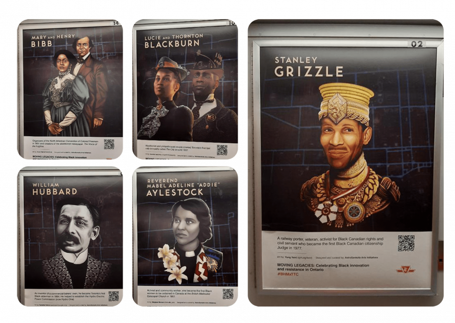 To celebrate Black History Month, the TTC has partnered with Astrosankofa Arts to feature eight local black artists as they create works to celebrate great historical figures of colour. Wrapping buses, posting Murals on Streetcars, Posters in transit stations and across TTC social media will be the works of these amazing artists. Adeyemi “Yung Yemi” Adegbesan, Autumn Beals, Danilo “Deluxo” McCallum, Kanisha Dabreo, Komi Olaf, Meighan Morson, Quentin VerCetty and Troydell Wallace have all created incredible works of art that can be found around the city.2