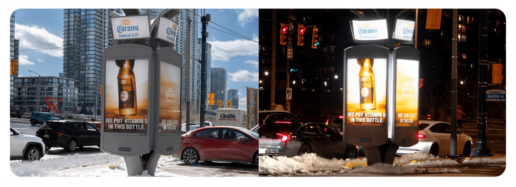 As Toronto returns to a new normal, foot traffic in the downtown core has seen a considerable jump. Several Business Improvement Areas in the city, from Yonge Street to Queens Quay, are reporting higher pedestrian counts than 2022, regularly breaking past the monthly averages.6 With pedestrians flocking to the streets again, unique displays and installations at street level are a great option for advertisers. Like the Corona Sunlight Stunt, where a Coremedia street ad used lighting to mimic the look and feel of sunlight in the middle of wintery nights.